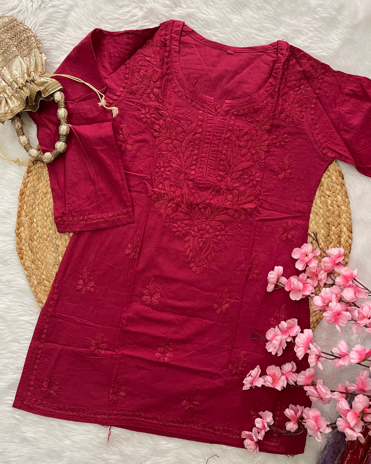 Rifat Rayon Short Self Chikankari Handwork Kurtis