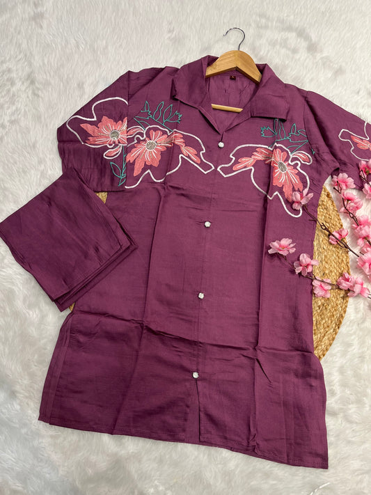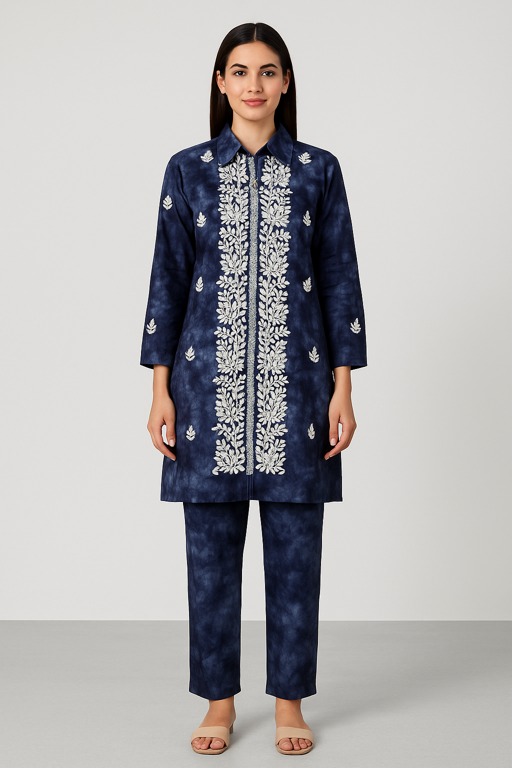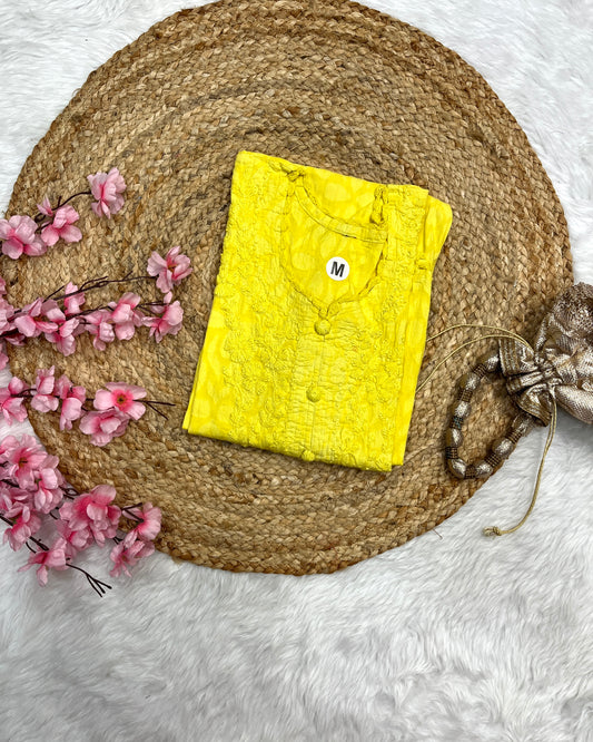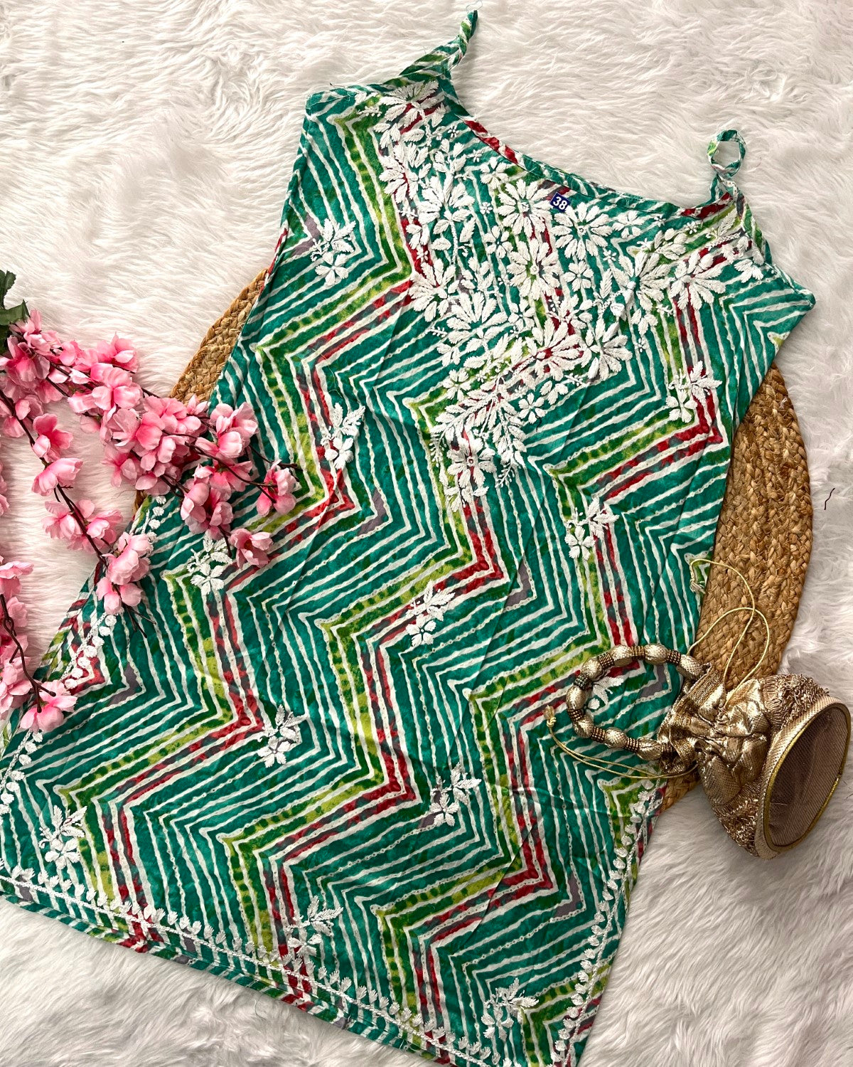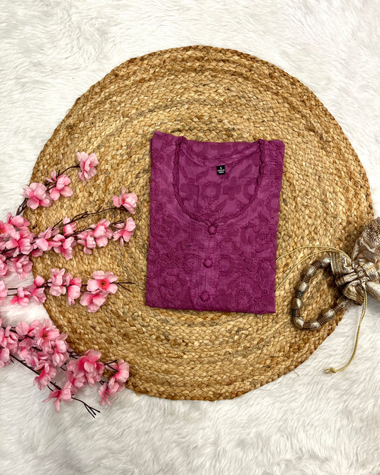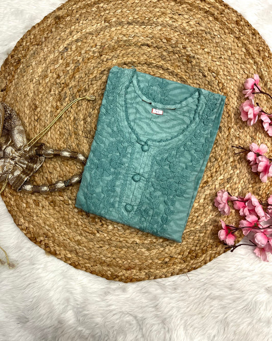 Gul Chikankari Handwork Dobby cotton long straight kurtis